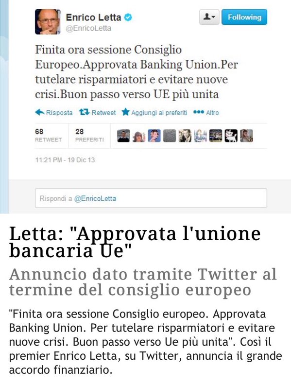 Per quale motivo l’Italia ha accettato senza distinzione alcuna l’unione bancaria e l’avvento del ” bail-in ” pur sapendo che viste le circostanze e l’austerità e la deflazione salariale e il pareggio di bilancio, patto di stabilità e altre amenità varie imposte avrebbero avuto ripercussioni sulla nostra economia reale e di conseguenza sui bilanci delle banche?
