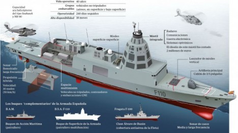 “All’improvviso verranno approvati tre nuovi programmi con impatto diretto sull’industria della difesa nazionale: la costruzione di nuove fregate della nuova “classe F-110” per la Marina spagnola; i primi 348 VCR 8 × 8 veicoli corazzati per l’esercito; e la modernizzazione dell’attuale flotta di 70 caccia Eurofighter . In totale, sono circa 7 miliardi e 331 milioni , secondo fonti confermate dal Ministero della Difesa.