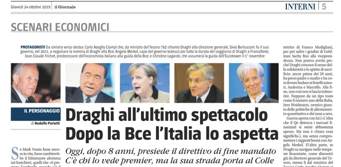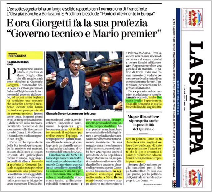 Giornale : “L’Italia potrebbe aver bisogno di lui, in caso di implosione del governo giallo-rosso. Ha autorevolezza, credibilità a livello planetario e competenze indiscusse per fare il premier … Poi, per fare il presidente della Repubblica, c’è sempre tempo>