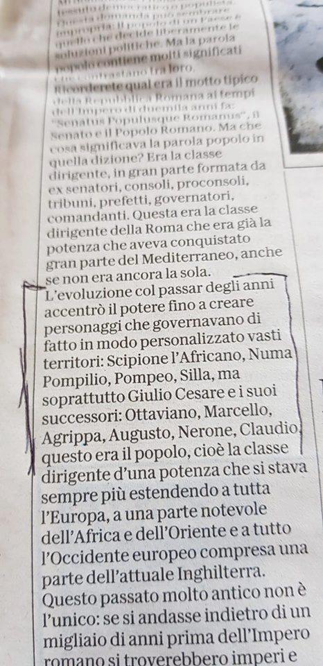 Tornino a studiare. Ora avanza la Cultura assoluta e incarnata, e sappiamo: Numa Pompilio fu  il dittatore che successe a Scipione l’Africano. Nulla sarà più come prima, nel regno della saccenza, nell’arroganza ignorante dell’Intellettuale progressista.