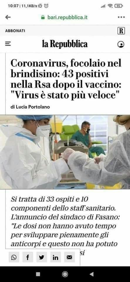Ricapitolando: in un mese con solo due vaccini ci sono state oltre 7 mila reazioni avverse e 13 morti. Siccome non esiste in Italia una farmaco-sorveglianza attiva, i numeri degli effetti avversi forniti dall’AIFA sono solo una microscopica parte del totale!