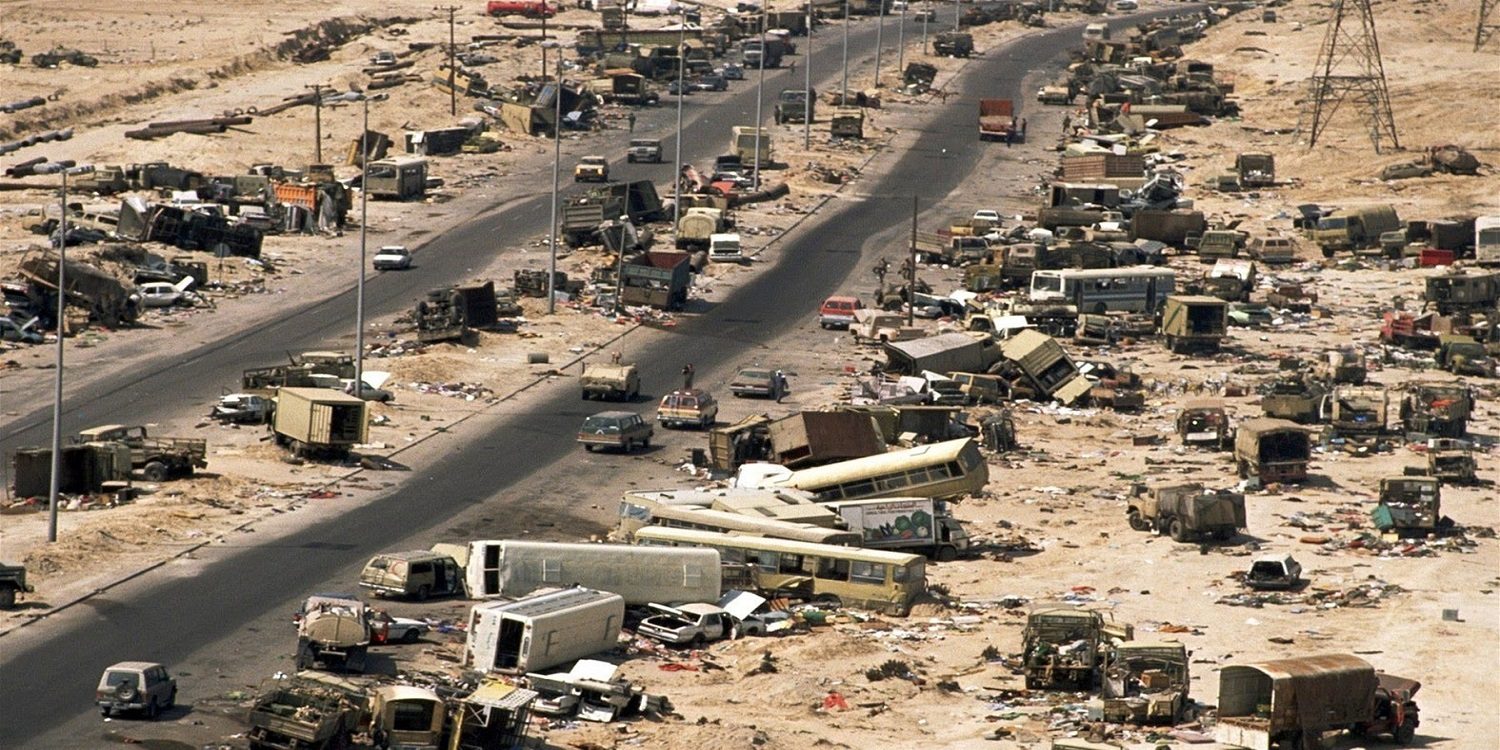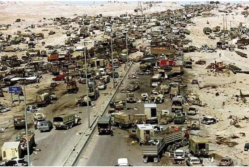 La guerra non ha avuto storia: dopo un mese di bombardamenti, l’Iraq è stato ridotto allo stremo ma al tempo stesso fino a quel momento è ancora unito e da Baghdad allora Tareq Aziz, ministro degli esteri iracheno ed esponente in quel governo della minoranza cristiana, il 22 febbraio ha preso un aereo per Mosca per concordare con la cadente URSS un piano di uscita dal conflitto, prevedendo anche il ritiro delle forze irachene dal Kuwait. Ma il piano, tra l’incredulità di molti attori internazionali, è stato respinto da Bush senior, presidente Usa ancora per 18 mesi; da Washington è arrivato anzi l’ordine di iniziare le operazioni via terra per arrivare in breve tempo a Kuwait City. Così è stato ed ecco che si arriva nella notte fatidica tra il 26 ed il 27 febbraio; da Baghdad in quelle ore frenetiche, è arrivato l’ordine della resa e della ritirata, riconoscendo la vittoria militare dell’alleanza anti Saddam guidata dagli Usa.Sembrava tutto procedere per come stabilito, con la guerra oramai cessata e le ostilità appianate; ma ecco che in quelle ore è intervenuto un episodio destinato a cambiare per sempre l’Iraq e, con esso, parte del medio oriente: due carovane con migliaia di uomini e mezzi dell’esercito iracheno al seguito stavano camminando lungo l’autostrada 80, che dal Kuwait conduce a Bassora, quando improvvisamente una pioggia di fuoco ha iniziato a travolgere ogni cosa ed ogni persona si muovesse in quella lingua di asfalto lungo il deserto.
