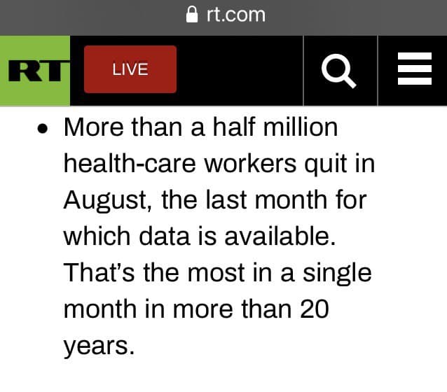 Più di mezzo milione fra medici e infermieri hanno lasciato il lavoro ad agosto, ultimo mese disponibile. E’ il numero mensile più alto registrato in 20 anni.
