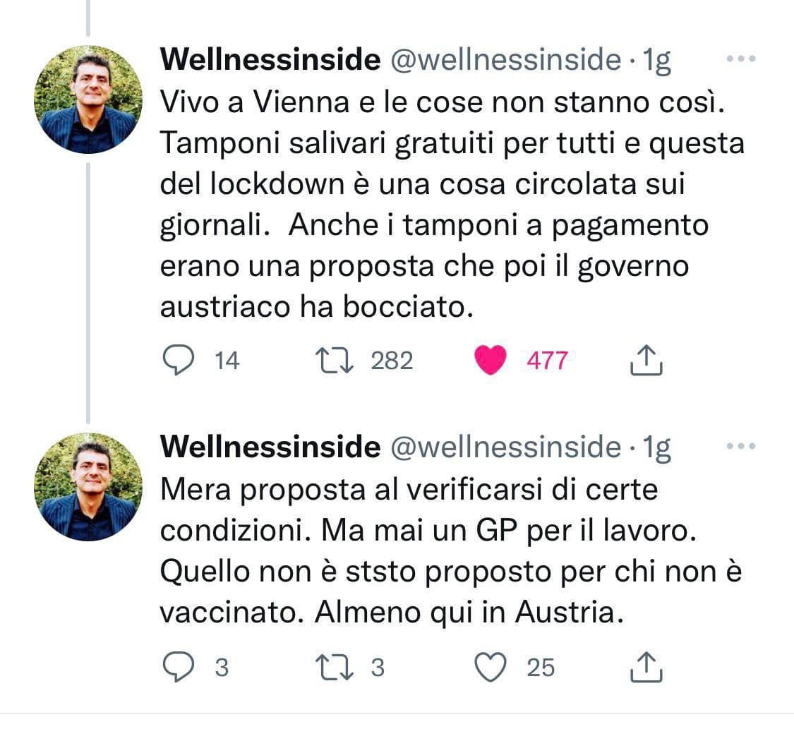Nei giorni scorsi, i media italiani avevano fatto trapelare che in Austria stessero per mettere il certificato razziale vaccinale sulla base di quanto già visto in Italia sotto il regime di Draghi. Molti si sono immediatamente lasciati andare allo sconforto credendo che stessero per stringere l’intera Europa nella morsa del Grande Reset. Questa fonte, e altre che vivono in loco, smentiscono che in Austria stiano per partire nell’esecuzione del cosiddetto certificato verde per il quale non pare esserci nemmeno alcuna proposta legislativa sul tavolo. Stiamo pertanto parlando del nulla o più precisamente dell’ennesima operazione di terrorismo psicologico praticata dell’apparato eversivo e dei media che hanno ormai il solo scopo di colpire l’opinione pubblica e destabilizzarla per indurla a vaccinarsi in massa.