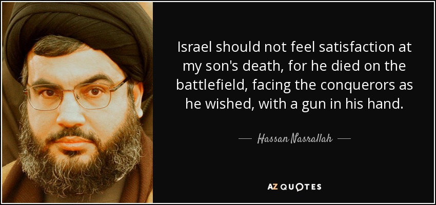 In un ambiente dove l’esaltazione del ‘martirio’ di parenti è quasi un’industria, non esibisce mai la morte di un suo figlio diciottenne, Hadi, caduto eroicamente nel 1997 a Jabal al Rafei durante una operazione di attacco a un drappello israeliano. In una cultura dove gli islamisti e gli ipocriti (pensate ai sauditi e Erdogan) ostentano farisaicamente la loro pietas, Nasrallah è un religioso che colpisce (gli israeliani che lo capiscono) per il tono “laico” , misurato, semplice e concreto dei suoi discorsi.