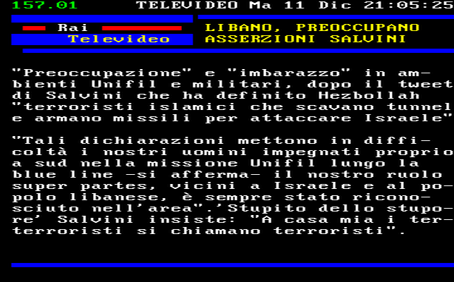 Bestia nella cristalleria. Non sa che Hezbollah ha pagato un alto prezzo di sangue combattendo contro i terroristi veri,quelli dell’ISIS, armati ed addestrati e protetti da Israele e USA. Non sa che sono alleati in Libano con i cristiani maroniti, ed hanno difeso con le armi in pugno i cristiani d’Oriente, da tutti noi abbandonati.