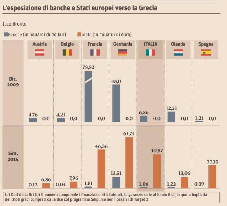 Nel 2014, noi eravamo esposti (come Stato) per 41. Persino la Spagna, che non c’entrava, si è trovata creditrice della Greci, al posto di Francia e Germania, per ben 27 miliardi.. E’ esattamente questo lo scopo, come spiega Borghi: redistribuire le eprdite delle loro specualzioni a noi.
