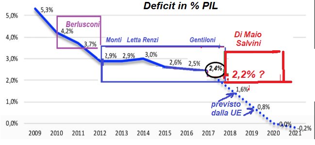 “Di Maio,Salvini e i loro dicono che fanno una manovra espansiva. Ma fanno un deficit del 2% (o 2,2%) che è INFERIORE A QUELLO CHE FACEVA IL PD con Renzi, Gentiloni, Letta e Monti. Ergo, sono balle”