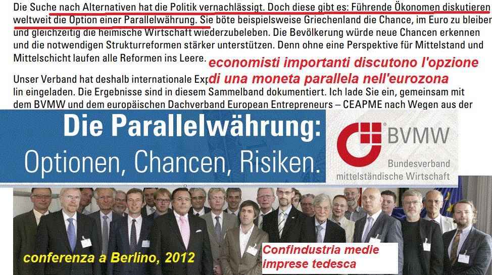 “Bisogna fare una Moneta Parallela, Fiscale, cioè lo Stato emette qualcosa con cui tra un anno o due paghi le tasse….tipo i crediti per le ristrutturazioni edilizie, ma trasferibili I tedeschi stessi avevano studiato questa soluzione prima che arrivasse il Quantitative Easing di Draghi..