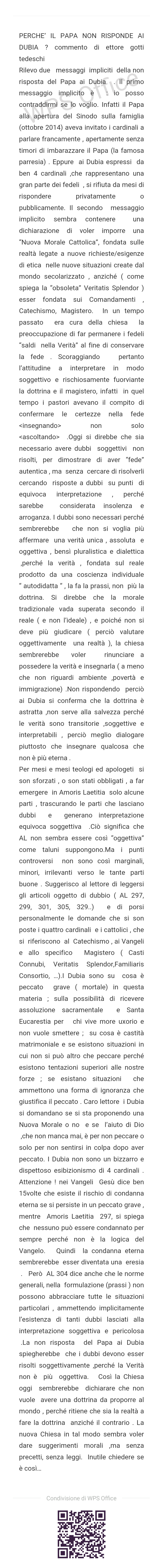 IL SILENZIO DI PAPA FRANCESCO SUI “DUBIA” E’ NEGAZIONE DELLA VERITA’ OBBIETTIVA Maurizio Blondet 25 Giugno 2017 1 di Ettore Gotti Tedeschi
