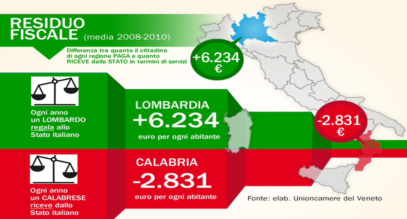 Residuo fiscale in Lombardia: 23.000 euro per una famiglia di 4 persone – In pratica, un’auto nuova ogni anno.