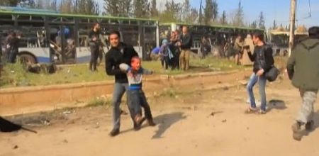 Dunque, è accaduto che, il 15 aprile, circa 5 mila abitanti sciiti delle cittadine del Nord stavano per essere trasportati sui pullman nella città di Aleppo, ormai sotto il controllo del governo; tuttavia i bus sono stati fermati mentre erano ancora nelle aree sotto controllo dei “ribelli”, apparentemente perché erano nate altre contraddizioni su particolari minori dell’accordo. Nel frattempo, i sunniti anti-Assad erano stati regolarmente evacuati dalle due cittadine del Sud e si trovavano ad Aleppo, sotto la sorveglianza del governo.