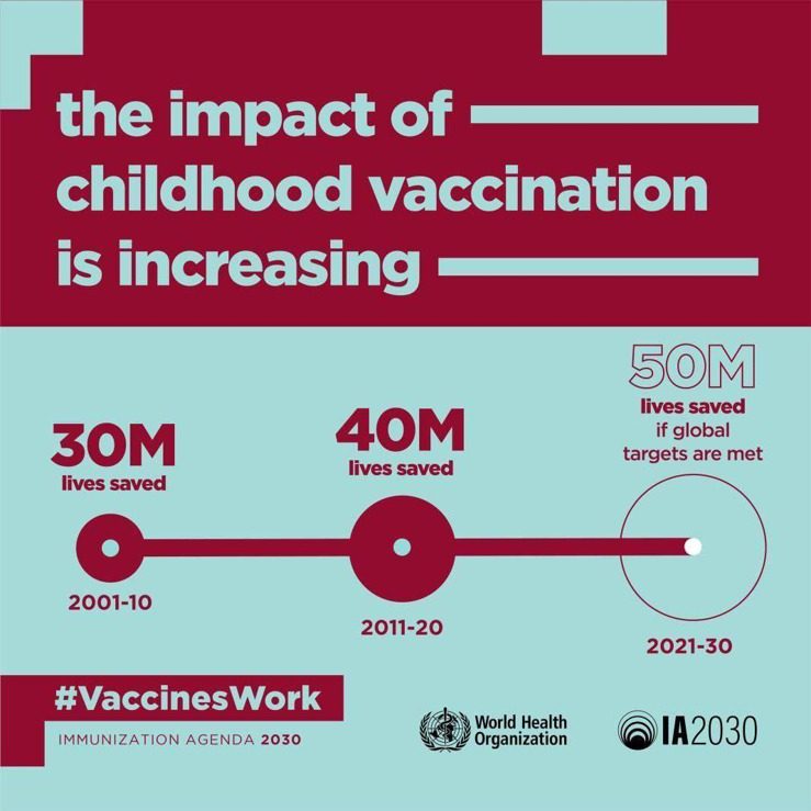Secondo il sito web dell’OMS, entro il 2030, il programma di immunizzazione dovrebbe avere una copertura del 90 per cento delle principali vaccinazioni somministrate nell’infanzia e nell’adolescenza.