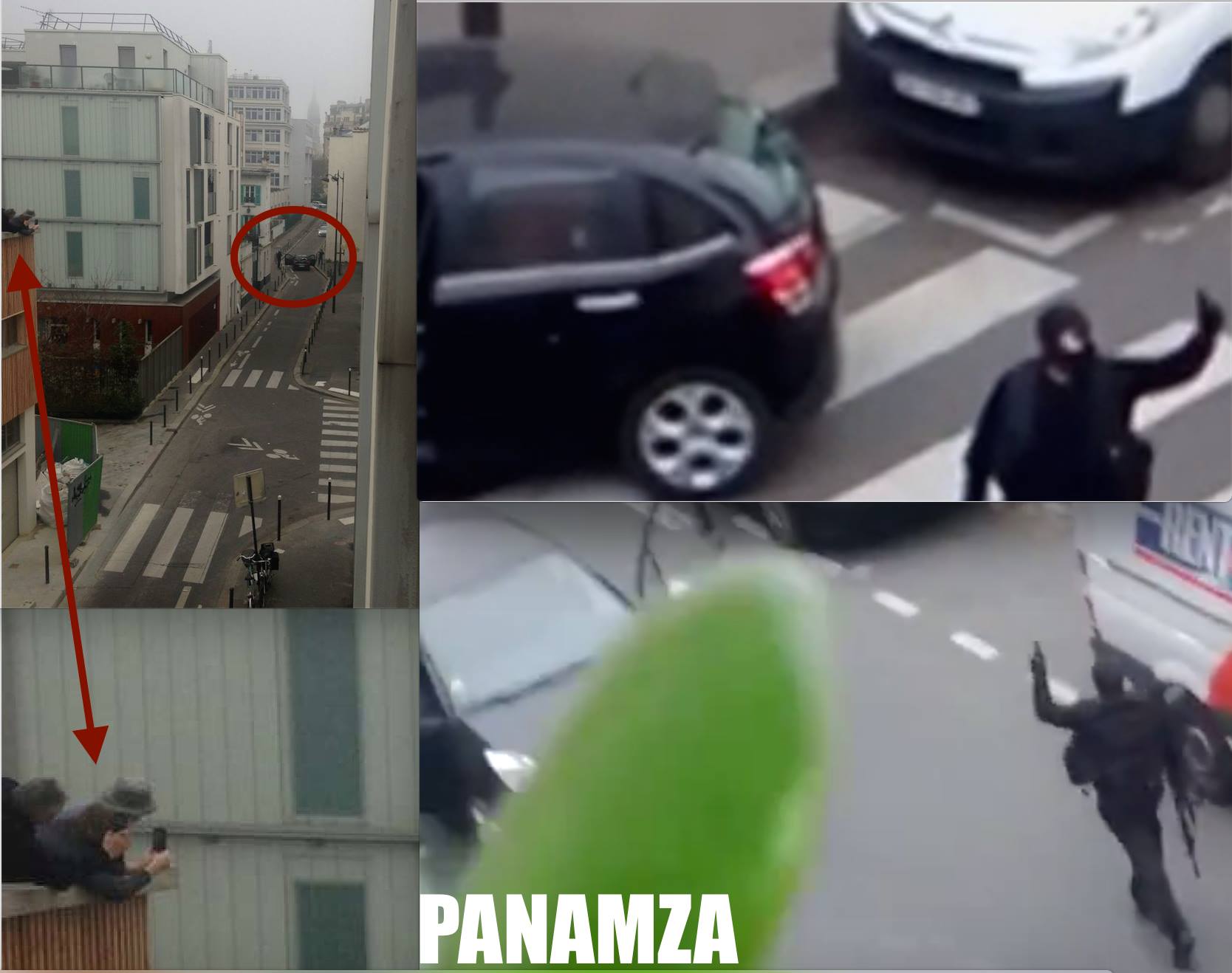 Poi, sono comparsi video in cui Coulibaly, ancor vivo, si dichiarava spontaneamente un seguace del Califfato. Una tv ebraica francese riuscirà ad intervisralo mentre è asserragliato nel negozio: uno scoop. Come quelle immagini prese dal tetto che mostrano i due teroristi all’uscita dalla strage di Charlie Hebdo: immagini riprese, si disse, da un giornalista israeliano che si trovava per caso lì… versione poi cambiata. Facciamola breve.