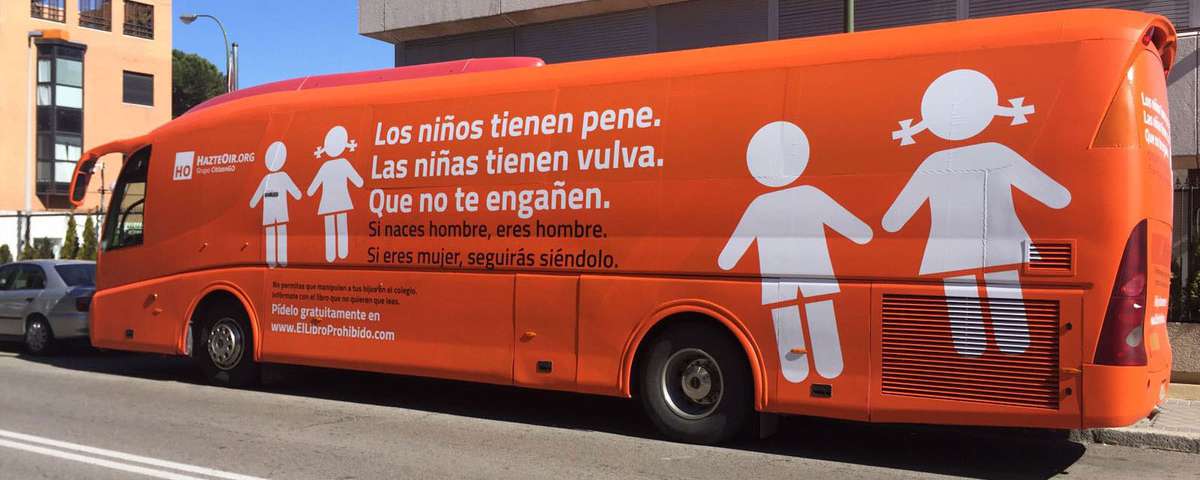Qualche settimana a fa a Madrid circolava questo bus. La grande scritta dice: “I bambini hanno un pene, le bambine hanno la vulva. Non ti far ingannare”.