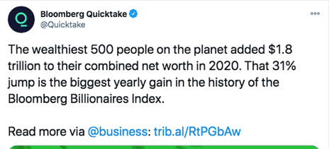 i 500 miliardari più ricchi del mondo hanno guadagnato con il Covid e Lockdown 1,800 miliardi: un aumento del 31% che non ha precedenti nella storia. E El Papa non ha nulla da dire…