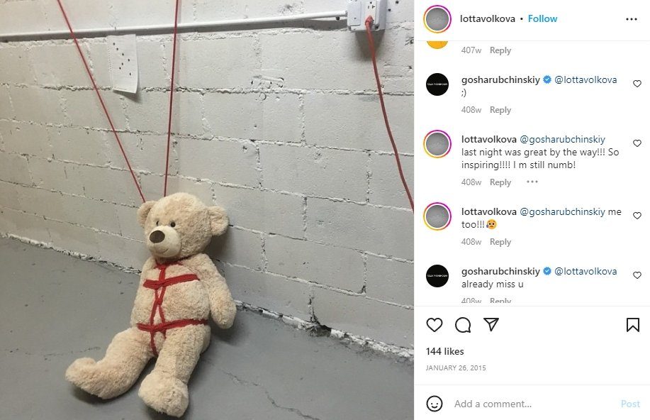 Nella pagina privata Lotte Volkova, la stilista per Balenciaga in fetish rosso: