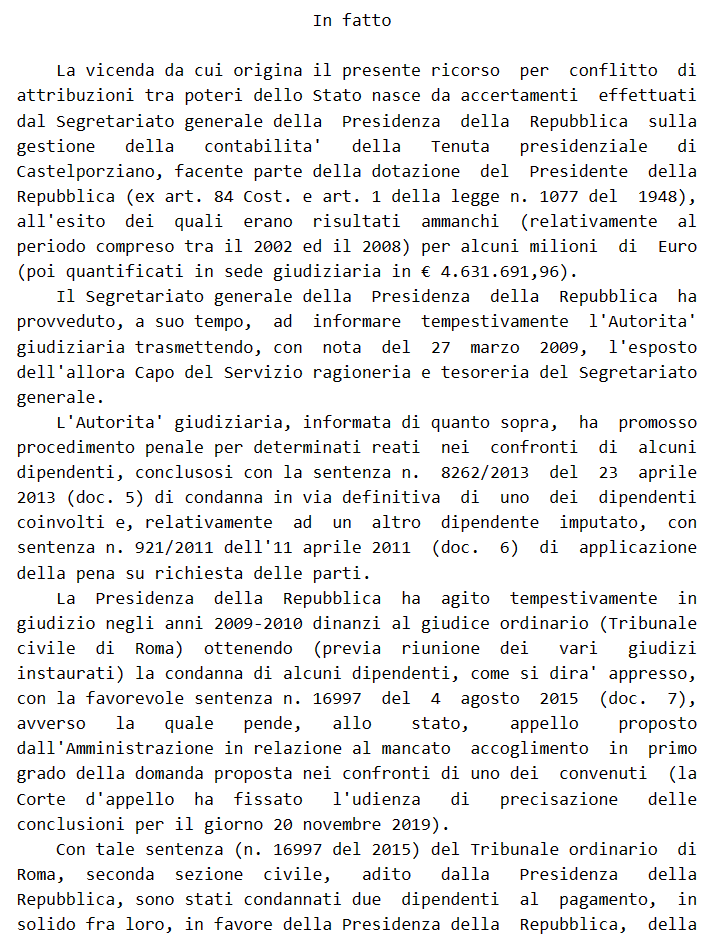 Però stavolta per ricorrere contro un “conflitto di poteri dello stato” ovvero perché secondo lei la Corte dei Conti non avrebbe avuto giurisdizione in merito, quindi: in un primo tempo la P.d.R. ha denunciato, poi, ottenute le condanne, ha fatto dietro front.