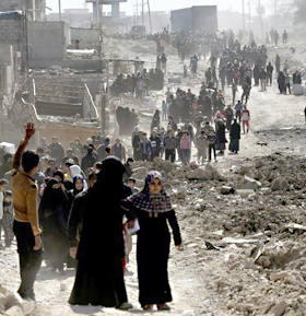 Almeno 400mila civili sono rinchiusi a Mossul, soptto le bombe, la maggior parte senza cibo né acqua da giorni.