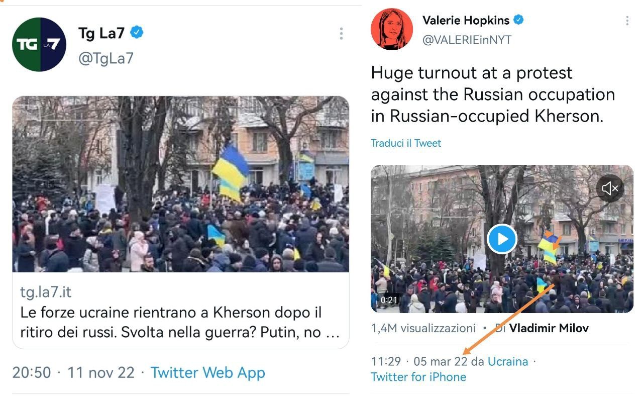 ? La7 (https://twitter.com/TgLa7/status/1591156320224575488?s=19) spaccia immagini di marzo (https://twitter.com/VALERIEinNYT/status/1500055776534179840?s=19) come se fossero di oggi… Cialtroni ne abbiamo?
