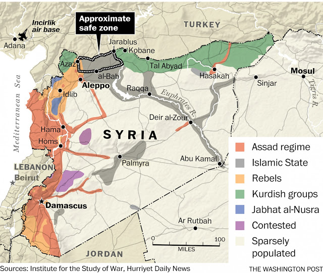 Perché il Sultano di Ankara non ha affatto rinunciato al suo caro progetto di zona-cuscinetto proteggi-ribelli. Il 9 novembre scorso, il suo primo ministro, Davutoglu, sé fatto intervistare da Christiana Amanpour (CNN) ed ha rilanciato la proposta di una invasione militare di terra per crearla: “…Truppe di terra è qualcosa di cui dobbiamo parlare insieme (con gli alleati, ndr.) e condividere…occorre una strategia con campagna aerea e truppe al suolo integrate…non possiamo farlo da soli”.