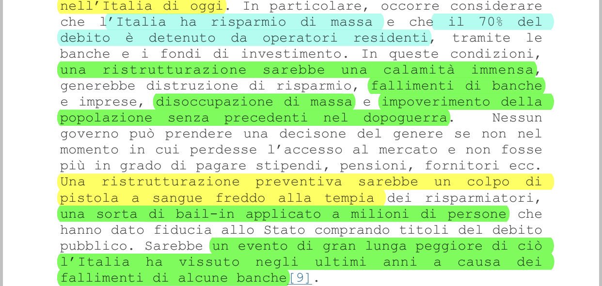 A farla breve, la riforma consiste in questo: che l’aiuto del Fondo sarà dato solo agli stati che hanno debiti pubblici “sostenibili”. Ossia: gli stati con grande debito pubblico (fate un nome a caso) devono sì contribuire al Fondo con decine di miliardi, ma se va in crisi, non può chiedere l’aiuto del detto Fondo: deve, prima, rendere “sostenibile” il suo debito facendolo pagare ai suoi risparmiatori e cittadini.