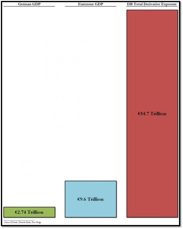 Salvataggio peraltro impossibile perché “Deutsche Bank ha in pancia titoli di carta straccia per un valore nominale (ma invendibili) per quasi 20 volte il Prodotto interno lordo della Germania”, ha scritto Claudio Conti : esprimendo il delicato “sospetto che questa (e altre) banca tedesca stia per fare il botto, e che dunque il governo di Berlino stia pensando soltanto ora a come “condividere il rischio” di dover assicurare tutti i correntisti della più grande banca europea”.
