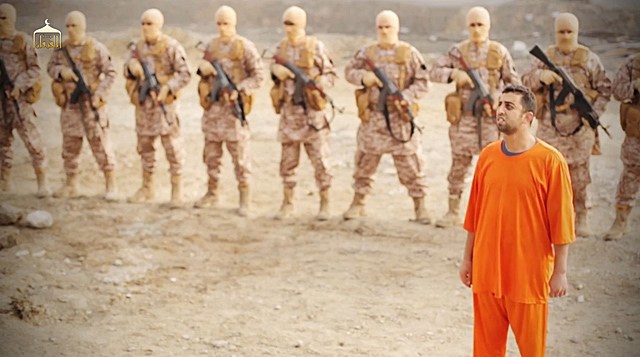 Forse ricorderete l’orribile evento del febbraio 2015, quando il pilota giordano Moaz al-Kasasbeh fu bruciato vivo in una gabbia da guerriglieri ISIS in un video molto pubblicizzato, diffuso dal SITE. Per la prima ed ultima volta, i guerriglieri dello Stato Islamico apparvero in mimetica kaki, con passamontagna coordinati, desert boots ai piedi, ordinatissimi, marziali .