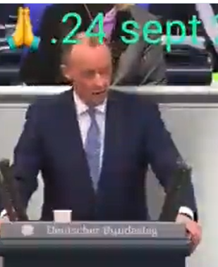Dalla Germania mi dicono: “Questo è stato preso fuori contesto, questo discorso del capo dell’opposizione Merz è stato il 27 febbraio di quest’anno, stava parlando della Russia che invadeva l’Ucraina il 24, ha appena detto accidentalmente settembre”. Un lapsus, niente da vedere