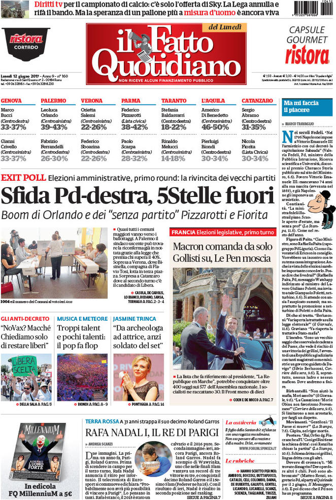 Ne da atto anche il titolo in pp de Il Fatto Quotidiano, noto giornale filogrillino :