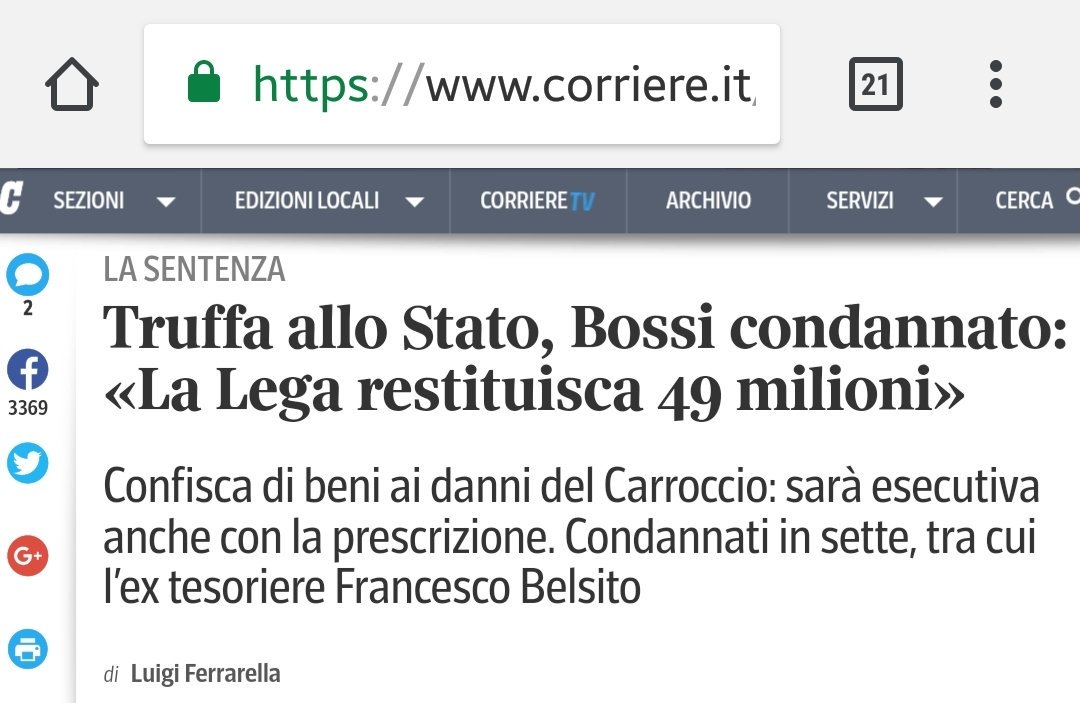 E’ stato già detto, anche da non-simpatizzanti come Luca Telese, che nel caso identico: il tesoriere della Margherita Lusi, i giudici hanno giudicato Margherita parte lesa… e  qui, invece, la Lega colpevole