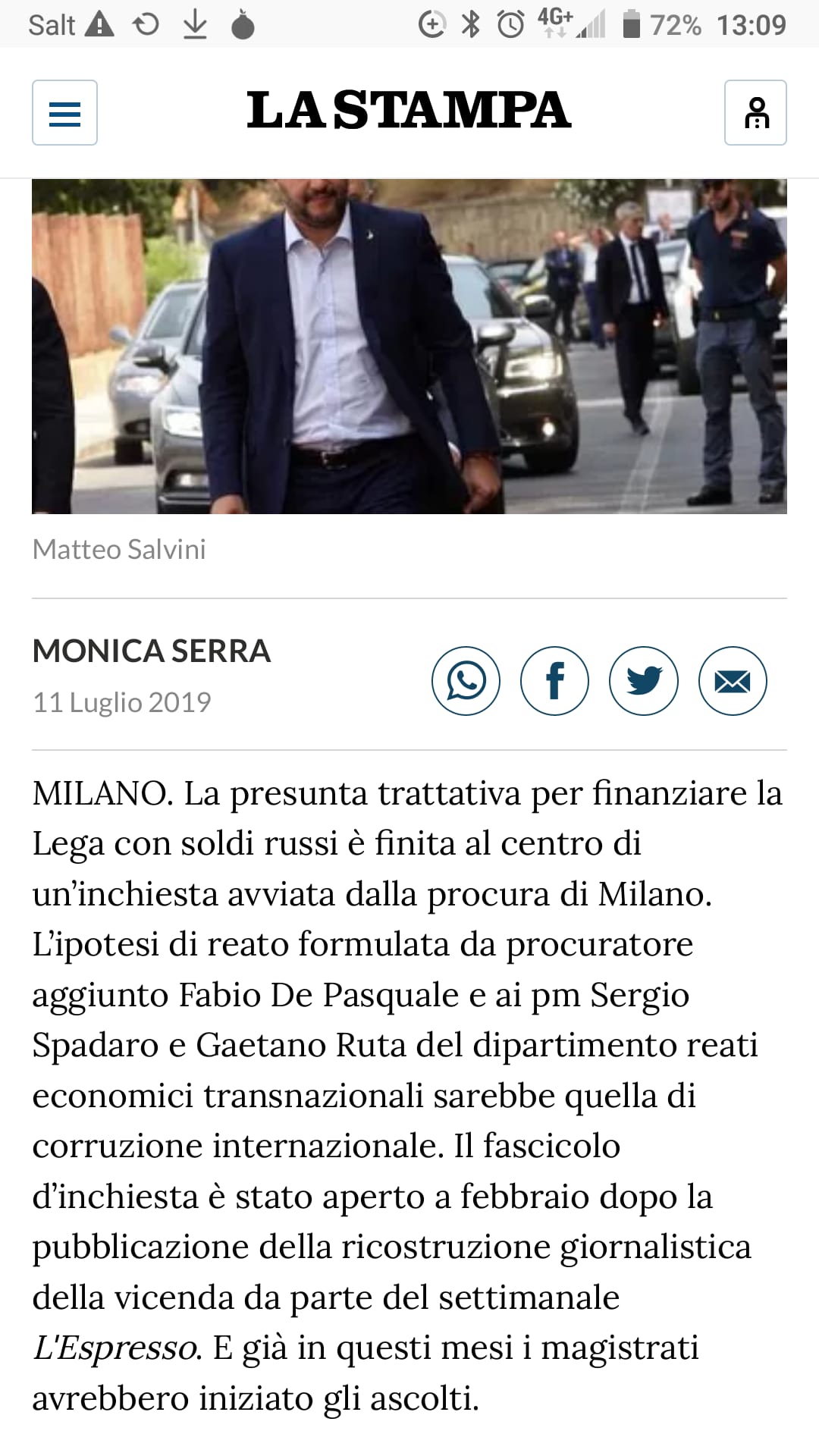 [Abbiamo visto i tg: Salvini “incalzato” dalle jene, ma chiaramente non sapeva ancora i dettagli. Non aveva ancora letto le “nuove” informazioni]