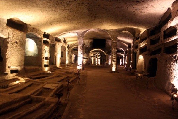 solo una piccola precisazione, io ho visitato le catacombe di San Gennaro e non riesco a capire cosa sia questo ipogeo di cui parla l’articolo poichè non vi è alcun luogo abbastanza grande per un comizio essendo appunto catacombe – a meno che non si riferisca ad una piccola basilica scavata nella roccia, tantevvero che una colonna è mancante alla base ma sta in piedi lo stesso. Si tratta del più antico luogo di culto di Napoli il centro del centro del cristianesimo napoletano anche se oggi credo sia sconsacrata; poco dopo cominciano le tombe ad arcosolio di cui una si ritiene abbia ospitato il corpo di San Gennaro.