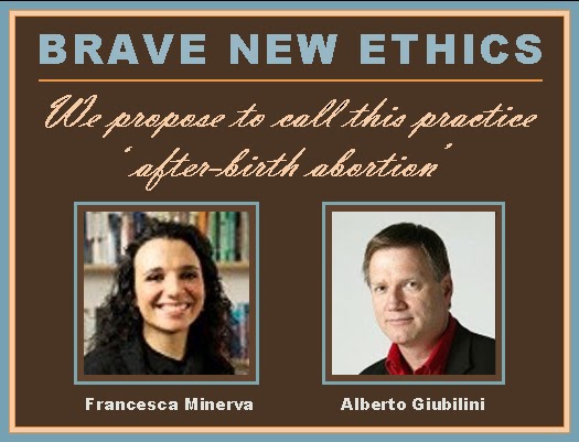 “Noi crediamo che quando situazioni simili a quelle che giustificano l’aborto si realizzano dopo la nascita, si dovrebbe essere autorizzati a ciò che noi chiamiamo aborto post-natale. Proponiamo di chiamarlo aborto post-natale anziché “infanticidio”, per sottolineare che lo statuto morale dell’ individuo ucciso è paragonabile a quello di un feto. Quindi dire che l’eliminazione di un neonato può essere eticamente accettabile nelle circostanze simili a quelle di un aborto. Queste circostanze comprendono il caso in cui il neonato ha la possibilità di avere una vita decente, ma il benessere della famiglia è in pericolo”