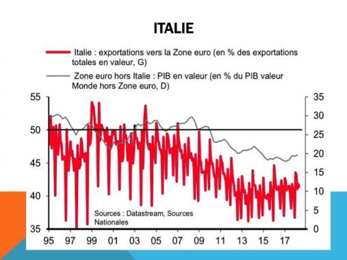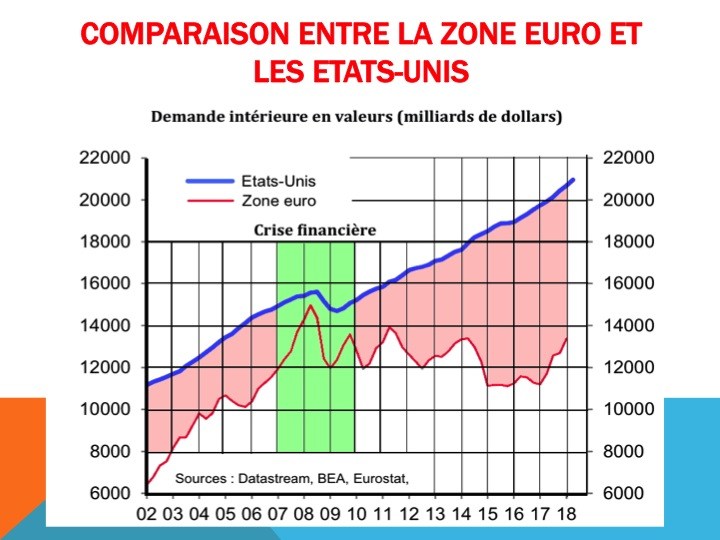 Dopo la crisi finanziaria del 2007 i consumi USA hanno ripreso il percorso di crescita, mentre l’area euro no, non ha ancora raggiunto, nel suo complesso (Germania ed Olanda comprese) i valori del 2008.L’Italia ha visto calare sia IMPoRT che EXPORT con l’area euro, ed un peggioramento del proprio saldo netto. Quindi l’euro non è servito ad aumentare l’interscambio; ma l’euro non doveva completare il mercato unico? Ciò è avvenuto anche negli altri paesi dell’eurozona. In tutti i casi i paesi hanno visto un calo del peso dell’import e dell’export verso l’area euro in percentuale al PIL. Insomma in NESSUN CASO la creazione dell’euro ha portato ad un interscambio maggiore e ad una maggiore interdipendenza. Anzi, ha portato all’effetto opposto (Scenari Economici).