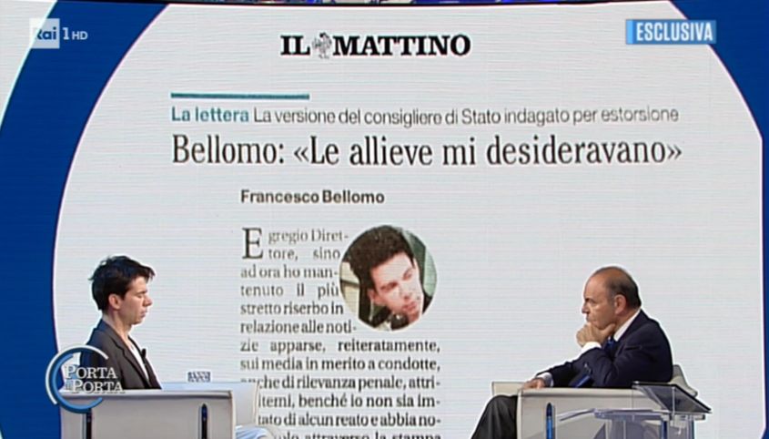 Un professore del liceo Tasso che si fa incriminare perché assilla insistente con sms sconci le sue studentesse, fino a farsi denunciare e perdere il lavoro . Magistrati vengono arrestati perché vendevano le sentenze. Carabinieri che finiscono sotto accusa perché si sono approfittati di due turiste ubriache. Un magistrato si fa destituire dalla Corte dei Conti perché andava a letto con le sue studentesse di magistratura, poi si vantava delle sue relazioni sulla rivista a disposizione degli studenti; imponeva loro che gli facessero conoscere i loro fidanzati; le soggiogava sessualmente anche minacciandole di cause penali (“Le vinco tutte”); si faceva dichiarare “un agente superiore a cui la borsista doveva giurare fedeltà”. Sarebbe consolante dire che, accecato dalle sue pulsioni sessuali imperiose e dal potere, aveva perso il lume della ragione. Ma è peggio: invitato da Bruno Vespa, il magistrato barese di 47 anni ha pure con tracotanza ed aria di sufficienza sostenuto che il suo comportamento era del tutto appropriato.