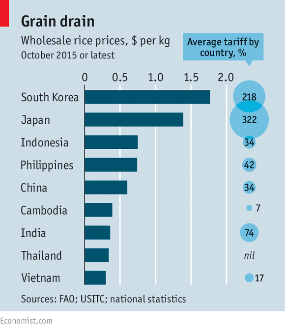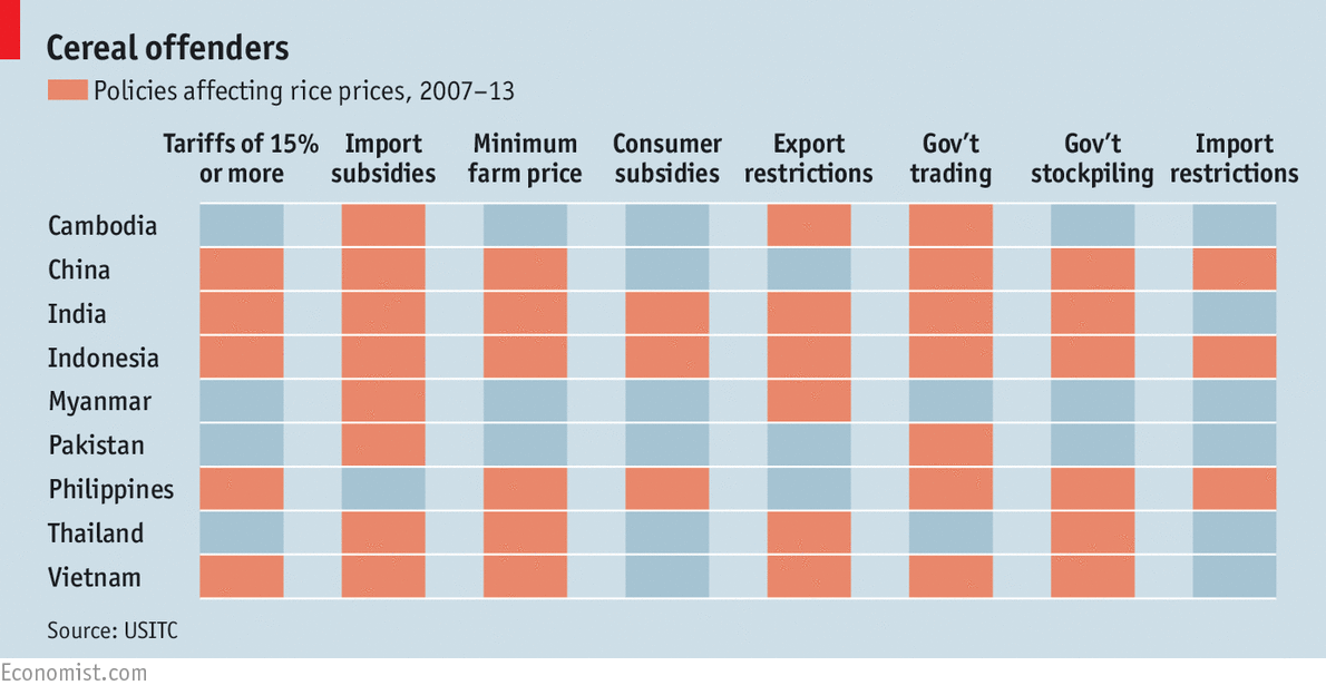 La fonte non è il Volkischer Beobachter, è uno studio dell’ultraliberista Economist del 2013. Infatti non si è trattenuto dal dare la lezioncina : invece di comprare il riso sui mercati mondiali dove costa meno, questi paesi producono riso superiore ai prezzi di mercato. “il che rende i cittadini più poveri”. Per dar ragione ad Economist, basta dimenticare che i consumatori (che pagano prezzo alto) sono anche i produttori, ai quali un prezzo alto dà più profitti. Un’altra ammissione della Bibbia britannica del globalismo: il successo di quei paesi è dovuto anche ad una finanza “modesta e poco sviluppata”, tenuta per le redini dallo Stato.